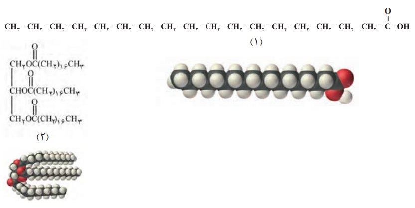 چربیها را میتوان مخلوطی از اسیدهای چرب و استرهای بلند زنجیر (با جرم مولی زیاد) دانست. با توجه به شکلهای زیر به پرسشها پاسخ دهید.