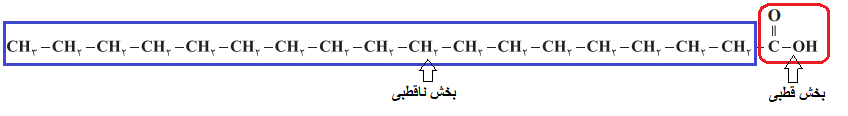 در مورد اسید چرب (ساختار 1) گروه کربوکسیل بخش قطبی بوده و قسمت هیدروکربنی، بخش ناقطبی میباشد: