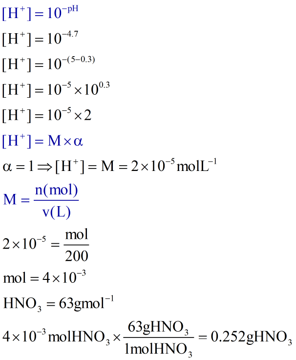 محلول 1 حاوی اسید قوی HNO3 با pH=4.7 هست: