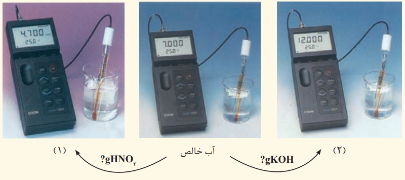 یک کارشناس شیمی، pH نمونههایی از 200 لیتر محلول تهیه شده (۱ و ۲) را اندازهگیری کرده است. حساب کنید، چه جرمی از هر ماده حلشونده به 200 لیتر آب افزوده شده است؟ از تغییر حجم چشمپوشی کنید.