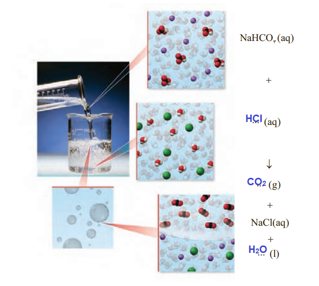 NaHCO3(aq)+HCl(aq)→CO2(g)+NaCl(aq)+H2O(l)
