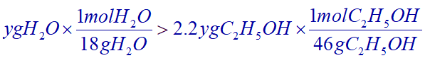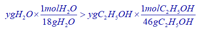 در نتیجه تعداد مولهای آب، بیشتر از تعداد مولهای اتانول، به ازای y گرم از آنها خواهد بود، زیرا: