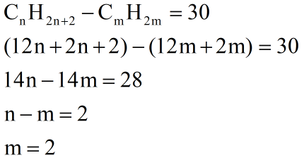 در نتیجه فرمول آلکان X به صورت C4H10 خواهد بود؛ از طرفی تفاوت جرم این دو هیدروکربن برابر 30 گرم است، پس با توجه به جرم مولی کربن و هیدروژن خواهیم داشت: